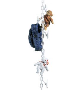 * 6? durable white plastic chain * 20 permanently attached clips * Includes ceiling hook * Fully assembled Toys not included * For children of all ages * Stuffed animals not included.